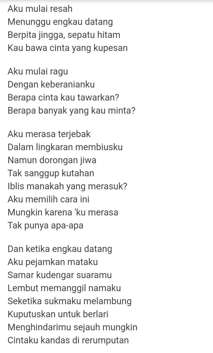 Lagu ini sebenarnya masih berkutat di tema asmara. Salam MasBro MbakBro Yuk melirik. Didepan ada musuhmu musuh Tuhan kita.